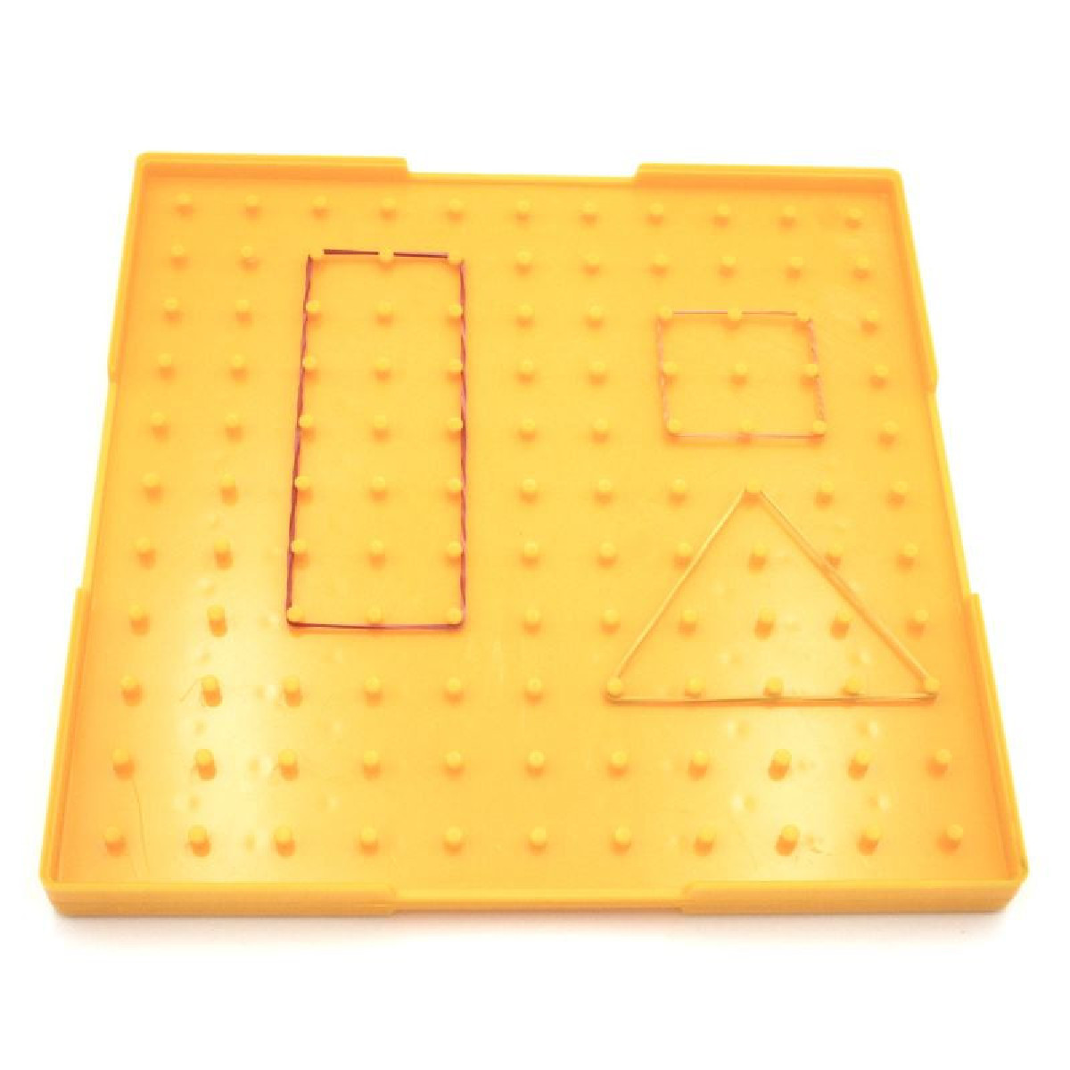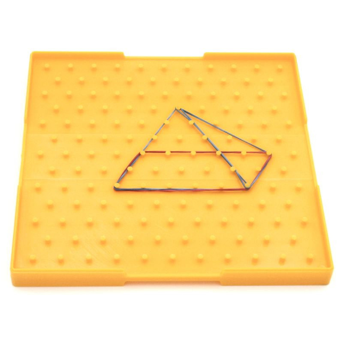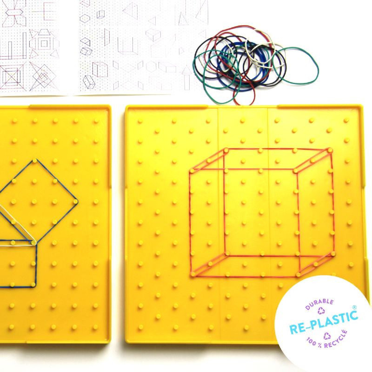 Planche géométrique 2 faces, jaune, 23 cm, empilable avec 25 élastiques.